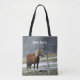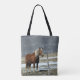 Cheval Belge À Paddock, Sac fourre-tout. Art numérique. Un cheval belge en paddock d'hiver derrière une clôture de barbelés. S'intègre bien dans la décoration de ferme ou de ranch. Entièrement personnalisable ; éditez en votre nom ou ajoutez votre propre texte, vos pensées ou votre devis préféré.