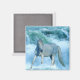 Ce magnifique Cheval blanc se fraye un chemin à travers le surf qui s'écrase sur une plage isolée. Les vagues se déversent dans la baie et cette magnifique créature jouit des eaux qui l'arrivent, imaginant peut-être qu'il fait partie de cette vaste étendue d'eau qu'ils appellent la Mer. Une image artistique puissante créée à partir de la photographie par l'artiste. Parfait pour les amateurs de chevaux partout. 25% des pourcentages de chaque aimant vendu, est donné aux grands gens du Knick o' Time Horse Secourt Group aux États-Unis.