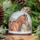 Cheval châtaigne élégant portant une selle décorée, posant à l'extérieur avec un arrière-plan flou panoramique par une journée ensoleillée, rayonnant de grâce et de force.