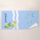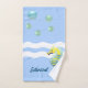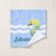 Cheval de mer aux couleurs qui évoquent la vie marine : bleu, blanc, jaune or et vert.