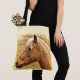 Voici un beau sac fourre-tout qui présente un beau cheval doré brun rétro éclairé par le soleil jaune.