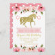 Ce cheval de parties scintillant en faux or de fille douce et un arrangement floral d'aquarelle est idéal pour une petite fille qui aime les chevaux. Il présente une silhouette de parties scintillant en faux or d'un cheval et deux chaussures de cheval roses sur un arrière - plan blanc. Le dos de l'invitation est un faux lavage à l'aquarelle avec un motif à pois blanc. D'autres invitations pour les chevaux sont disponibles au magasin alors s'il vous plaît visiter. Le cheval de parties scintillant en faux or de cette fille et l'invitation à l'anniversaire fleuri sont prêts à être personnalisés.