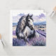 Carte de voeux vierge. Joli cheval blanc et gris debout dans un joli champ de lavande. Ceci a été créé avec de l'air et fait dans un style aquarelle.