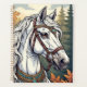 Un cheval noble portant une porte dorée ornée de bijoux bleus, entouré de feuilles d'automne vibrantes et d'un cadre forestier, évoquant l'élégance et l'imaginaire.