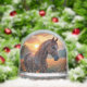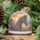 Un cheval majestueux se dresse au milieu d'un champ de fleurs colorées, illuminé par la lueur chaude d'un coucher de soleil serein, créant une atmosphère enchantée et tranquille.