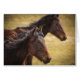 Une image photographique en couleurs rapprochées de deux chevaux, un au premier plan, est au centre, et l'autre au fond du sol est légèrement hors du centre pour un effet agréable. Les deux chevaux sont un brun foncé qui est complété par le champ d'herbe dorée de l'arrière - plan. Il y a une sensation de campagne très terre et rurale à cette image et il est terminé avec une belle vignette pour attirer votre oeil dans la photo. Ce produit est personnalisable. Choisissez votre style ou vos options pour le rendre exactement comme vous l'aimez.