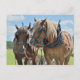 Une photo de deux chevaux de trait, une baie et une châtaigne, faisant une pause lors d'une compétition de labourage (labourage).