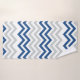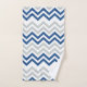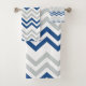Une serviette de bain moderne et branchée en chevron, aux lignes bleues et grises en zigzag blanc.