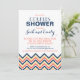 Invitation blanche douce et douce avec corail, jaune et bleu marine motif zigzag. Décoré de motif chevron en bas et à l'arrière. Un design simple et minimal pour votre journée spéciale. Customisez le libellé pour toute occasion comme baby shower, douche nuptiale, mariage, 16 sucré, graduation, fête d'anniversaire, fête de fiançailles, fête de bachelorette et plus encore.