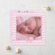 Ajoutez la photo de votre nouveau-né à cette jolie carte photo faire-part de naissance. Si doux avec les rayures roses et blanches et la polka blanche pointillée arc. Au verso de la carte, vous pouvez ajouter toutes les informations sur la naissance de votre bébé, telles que le nom, la date de naissance, le poids et la taille.
