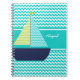 Il est facile de personnaliser ce carnet coloré de chevrons et de voiliers avec un nom avant de commander ! Avec des rayures d'aqua et de chevrons blancs avec voilier bleu marine avec des rayures de chevrons voiles bleu et vert citron avec blanc et une zone que vous pouvez facilement customiser avec un nom!