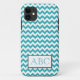 Stylish iPhone 5 Casemate Barely There Coque conçu avec un motif zigzag de chevron bleu turquoise et blanc et personnalisé avec vos initiales.