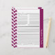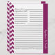 Des feuilles de recettes personnalisables dans un motif zigzag chic et tendance avec un grand espace d'écriture sur l'avant et le dos. Personnalisez l'en-tête de section avec le nom de catégorie de votre choix. Disponible dans une variété de couleurs comme un achat séparé afin que vous puissiez coordonner avec nos classeurs de recettes ou de mélanger et de faire correspondre chaque section une couleur différente.