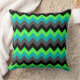 Un oreiller de 20 po x 20 po doté d'un élégant design motif de chevrons multicolores en noir, gris, vert et turquoise.
