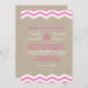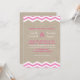 Des chevrons roses et blancs sur un arrière - plan burlap illustré accentuent ce faire-part de mariage. Faites défiler vers le bas pour voir la collection complète.