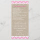 Des chevrons roses et blancs sur un arrière - plan burlap illustré accentuent ce programme de mariage. Faites défiler vers le bas pour voir le reste de la collection et si des articles supplémentaires sont nécessaires pour votre mariage, contactez-nous à prettyfancyinvites@gmail.com avec votre demande.