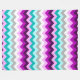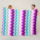 Une grande couverture en toison avec un beau design motif coloré de chevrons en plum violet ombre, lilas, blanc, minty turquoise, turquoise et gris.