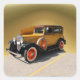 Une nouvelle berline Chevrolet Special 4 portes de 1931, comme dans les couleurs originales de Coffee Cream, Turnpike Brown, Swamp Holly Orange et noir. Il dispose de fenêtres, coffre, radiateur chromé garde pierre, casquette radiateur aigle, vases de fleurs et murs blancs. Présenté sur un arrière - plan d'or personnalisé. VoitureChevy1931