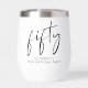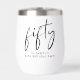 Chic vin tumbler pour votre 50ème anniversaire de fête avec "cinquante" présenté dans un script élégant et votre nom en lettres simples et modernes.