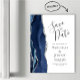 Cette élégante carte magnétique de date moderne dispose d'une bordure d'aquarelle bleu marine découpée avec une parties scintillant en faux argent. Le texte personnalisable est gris charbon sur un arrière - plan blanc.
