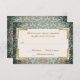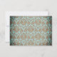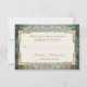 Elégante et ornée à l'apparence cette belle carte de réponse de mariage RSVP est faite dans une riche aqua et un modèle de damas à l'aspect marron antique. Une zone de texte couleur crème, au milieu, a des graphiques de porte-places ornés de couleur or sur les quatre coins. Le texte dans un brun doré est prêt à personnaliser avec vos informations. Jolie addition à notre jeu de Mariage damassé Chic Antique Français.
