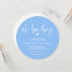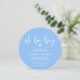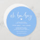 Écoutez avec cette invitation chic bébé bleu typographique oh baby shower. Cette carte d'invitation circulaire a un design minimaliste pour les parents modernes. Avec son joli petit motif, il est parfait pour une carte de faire-part pour bébé garçon ou pour accueillir une fête de douche en l'honneur d'un nouveau parent.
