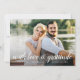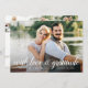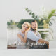 Élégantes cartes de remerciement à plat présentent votre photo de mariage préférée en plein saignement, avec "avec amour et gratitude" ou votre message personnalisé superposé dans un script de calligraphie blanche, avec vos noms et votre jour de mariage en dessous. Six de vos photos de mariage favorites apparaissent au dos dans une mise en page collage. Personnalisez le dos avec un message préimprimé ou supprimez l'exemple de texte si vous préférez une note manuscrite.