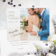 Tout Simplement Chic. Ce modèle mariage moderne et élégant présente un design lumineux, propre et frais, avec une superposition semi-transparente pour votre texte sur la partie gauche de votre photo, donnant une sensation de flux. Pour ajouter à cet effet, en fonction de la longueur de vos prénoms, un ou les deux peut "déborder" sur la photo comme dans cet exemple! Vous pouvez donc expérimenter avec quel nom vous mettez en premier et voir comment chaque version ressemble. Nous avons choisi les angles pointus standard comme forme de carte par défaut, mais vous pouvez facilement changer cela en angles arrondis, car cela fonctionne aussi très bien avec ce design. Alors vérifiez les deux regards et voyez lequel vous attrape ! La couleur par défaut du texte LOVE AND THANKS sur le devant est un ton or élégant appelé California Gold et l'autre texte sur le devant est noir. À l'arrière, le texte est gris, mais vous pouvez changer ceci ou n'importe quel autre texte, et vous pouvez également changer la police. Nous avons défini l'arrière - plan sur le dos comme transparent, de sorte que la couleur du papier sert simplement de couleur de base. Vous pouvez modifier ceci et choisir une couleur pour la base si vous préférez. Nous avons mis un exemple de texte au dos pour que vous le remplaciez par votre propre message comme vous le jugez bon, mais s'il vous plaît ne vous sentez pas restreint par cela. Si vous préférez supprimer entièrement notre exemple de texte et garder le dos complètement vide afin que vous puissiez écrire une note manuscrite sur chaque carte à la place, vous pouvez le faire. Ou vous pourriez vouloir remplacer notre texte par votre propre message de gratitude et votre propre clôture, puis signer vos noms à la main lorsque vous recevez les cartes. Vous pouvez également modifier la police. Le type de papier par défaut, matte, a une chaleur douce et résiste à l'usurpation, c'est donc un excellent choix pour écrire votre propre message. Vous pouvez modifier cette option et choisir à la place semi-brillant ou un autre type de papier. Assurez-vous en tout état de cause de supprimer notre exemple/espace réservé texte sur les deux côtés de la carte, et s'il vous plaît n'oubliez pas de remplacer l'espace réservé photo sur le devant par votre propre. Utilisez les outils de design intuitifs, votre photo préférée et votre inspiration et faites de ce mariage élégant uniquement le vôtre. Utilisez les outils de design intuitifs, votre photo préférée et votre inspiration pour customiser cette élégante carte de remerciements de mariage et la rendre unique à vous. Et s'il vous plaît naviguez dans notre boutique pour une sélection d'autres mariage moderne design merci cartes à plat, ainsi que des cartes postales et magnets!