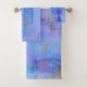 Conception abstraite des stries et lavages bleus et dorés cosmiques. Belle ombrage de bleu avec des accents faux métalliques. Un look rêvé et chic, parfait pour toute jeune fille branchée classe ou toute personne qui aime une touche Boho pour sa salle de bain.