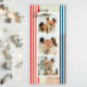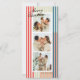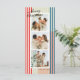 Des rayures verticales étroites de rouge, bleu, vert et crème donnent à cette trois carte de vacances photo une ambiance moderne et chic associée à des polices classiques élégantes en noir. Le backer a amplement de place pour un message plus long personnalisé de soutien ou de mise à jour de famille pour envoyer à des amis proches et la famille.