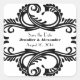 Élégant et raffiné Chic Damask Enregistrer les stickers Date en noir et blanc avec un cadre tourbillon florissant. Ces stickers de date modernes sont un choix de classe pour le couple sophistiqué. Facile à customiser, il suffit d'ajouter vos coordonnées de mariage dans les champs fournis. Cliquez sur le bouton "Customiser" pour trouver d'autres options de personnalisation comme changer la couleur arrière - plan pour correspondre à n'importe quel jeu de couleurs mariage.