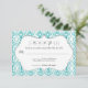 Chic Damask RSVP [Turquoise] Couleurs disponibles *Autres couleurs disponibles sur demande. Laisser un commentaire ou envoyer un message.* Besoin d'aide pour customiser votre invitation ? Pas trop au fait de l'ordinateur ? Vous n'avez pas le temps ou la patience pour l'outil de personnalisation ? Vous avez besoin d'aide pour apporter des modifications ou des modifications à votre conception? Utilisez le bouton "Aide-moi à la Personnaliser" ci-dessus pour nous envoyer un message contenant les informations que vous souhaitez inclure sur votre invitation ainsi que toute autre demande de modification. Nous vous enverrons un lien vers votre invitation pré-customisée dans les 24 heures ! De là, il vous suffit de l'ajouter à votre panier et de le retirer ! *N'oubliez pas d'inclure le nom ou le numéro d'identification du produit de l'invitation qui vous intéresse* COMPLÉTEZ LE JEU