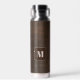 Bouteille d'eau isolée avec un design chic en faux cuir marron foncé avec une forme rectangulaire (en option) et votre monogramme personnalisé. Grand comme un cadeau personnel pour lui.