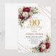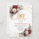 Chic Deep Red Gold Roses 90th Birthday Invitation