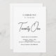 Cette invitation d'anniversaire chic et moderne présente un arrière - plan blanc élégant et une typographie noire élégante. Le mélange de polices de caractères manuscrites et de serif audacieuses met en valeur l’âge du célébrant de façon élégante et attrayante. Parfait pour des fêtes d'anniversaire sophistiquées ou des célébrations marquantes, ce design respire l'élégance et la simplicité tout en conservant un look intemporel.