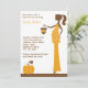 Invitation baby shower chic avec une maman en silhouette tenant une adorable tenue citrouille.
