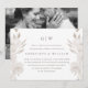 Simple et moderne, aérien et neutre, floral et feuillage avec une typographie classique, changez la date de l'annonce de report de mariage avec une photo pleine page au dos de la carte. Cette annonce élégante est un moyen chic de faire savoir aux invités que la date de votre mariage est reportée en raison de circonstances imprévues.