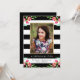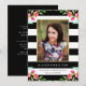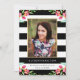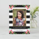 Invitez vos amis et votre famille à votre remise de diplômes avec une invitation de remise de diplômes Chic Floral. Le design époustouflant présente des rayures noires et blanches, des accents floraux aquarelle rose, un cadre photo doré et des espaces réservés pour votre texte personnalisé et votre photo.