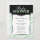 Imprimé zèbre élégant et unique invitation Baby Shower avec un cadre noir en-tête design sur un motif zèbre vert et blanc rayé, et imprimé sur mesure avec vos détails de célébration.