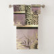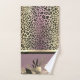 Un empreinte de léopard chic à l'ombre dorée et lavande avec un ruban noir et bronzé et des motifs floraux botaniques dorés sur fond de lavande. Vibes chic chic et modernes.