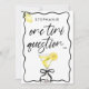 Elégant et chic Lemon Drop Martini Bridesmaid Carte de proposition - Une question TINI... Demandez à cet ami spécial d'être votre servante d'accueil avec cette carte de proposition élégante à thème martini. Doté d'une illustration aquarelle d'un martini à goutte de citron avec un arc de coquette noir élégant et un cadre de ruban serré et décalé dessiné à la main. Un mélange de typographie de script et de police de bloc stylisée, apporte une touche d'élégance fantaisiste. Personnalisez cette carte de proposition "Serez-vous ma demoiselle d'honneur" en ajoutant votre propre message personnalisé.