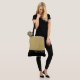 Ce beau sac fourre-tout de la mode avant montre le mot "Maid of Honor" en couleur de texte blanc sur le noir avec le sac fourre-tout supérieur dans Matte Gold personnalisé. A beaucoup de place pour le texte personnalisé. Les graphiques et le texte sont des deux côtés de ce sac fourre-tout. Manche noire. Customisez plus loin ou achetez comme indiqué.
