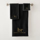 Initiales en or monogramme personnalisées et élégantes, set de serviettes de bain noir nom or. Rafraîchissez votre décor de salle de bain avec un style typographique minimaliste.