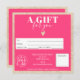 Cadre géométrique parties scintillant moderne chic rose et or bordure simple carré certificat cadeau, ajoutez votre logo, avec un coeur d'or rose. Bon cadeau d'anniversaire ou de Noël idéal.