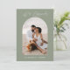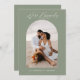 Invitation vos invités en ligne avec un code QR qui les envoie directement à votre site mariage. Ce design photo contemporain en vert sauge avec l'expression "We're Engaged" dans un script de calligraphie manuscrit moderne est une carte de faire-part parfaite. Insérez facilement votre photo, vos noms et l'URL du site Web mariage pour en faire votre propre photo.