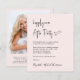 Une invitation de mariage rose pâle et économique qui présente "Happily Ever After Party" dans un script moderne chic, votre invitation dans la typographie serif classique et vos noms dans un script signature. Au verso, ajoutez votre photo et entrez l'adresse de votre site Web mariage pour créer un code QR que vos invités peuvent scanner en ligne à RSVP et obtenir des détails supplémentaires.