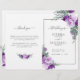 Voici le programme parfait, élégant et plié pour votre prochain mariage. Ce design présente de magnifiques pivoines et des bourgeons roses dans les tons violets, lilas et violets, ainsi qu'une végétation branchée de feuillage d'eucalyptus et une bordure en feuille d'argent faux. Ce programme a beaucoup de place pour tous les détails de votre programme de mariage. Tout le texte est facilement personnalisable à l'aide des champs modèles fournis. Découvrez la collection pour des produits complémentaires de suite mariage. Si vous avez une question de design ou souhaitez voir ce design sur un autre produit, n'hésitez pas à me contacter à l'adresse jschmidtdesignworks@gmail.com . Design © Judith Schmidt.