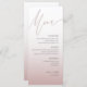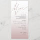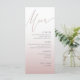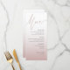 Elevate your reception table with this elegant and modern wedding menu, featuring a soft dusty pink and rose gold gradient background. The clean layout and stylish modern calligraphy create a sophisticated look that suits romantic, boho, classic, or contemporary weddings. Fully customizable, this menu template makes it easy to showcase your personalized courses, adding a polished and cohesive touch to your wedding décor