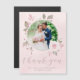 Merci à vos invités mariages dans le style avec cette élégante photo florale personnalisée merci carte magnétique. Ce modèle design chic présente votre photo sur le devant encadré d'une couronne fleurie de roses roses blanches peintes à la main et de verdure sur un arrière - plan de lave-linge aquarelle. Sous la photo en script moderne, on peut lire "Merci" et ci-dessous, vous trouverez vos noms avec date mariage à personnaliser. Le dos de la carte a un message personnalisé et une signature accentuée par un bouquet de roses. Conçu par Susan Coffey.