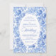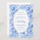 Make a refined first impression with this wedding invitation featuring classic French toile de jouy roses in elegant shades of navy blue, royal blue, dusty blue, and deep blue. Inspired by timeless European floral design, this invitation blends traditional sophistication with modern elegance, perfect for a classic, romantic, or formal wedding celebration.
